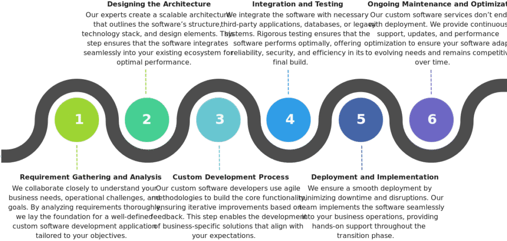 Developing tailored software requires a well-structured process that focuses on understanding business objectives, selecting the right technologies, and delivering scalable, future-ready solutions. Here’s how we bring your custom software to life: